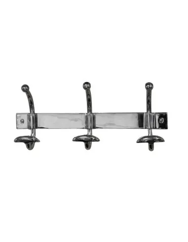 Sa base en bois clair ou patiné est rehaussée de trois crochets en métal vieilli, pour suspendre manteaux, écharpes ou sacs.