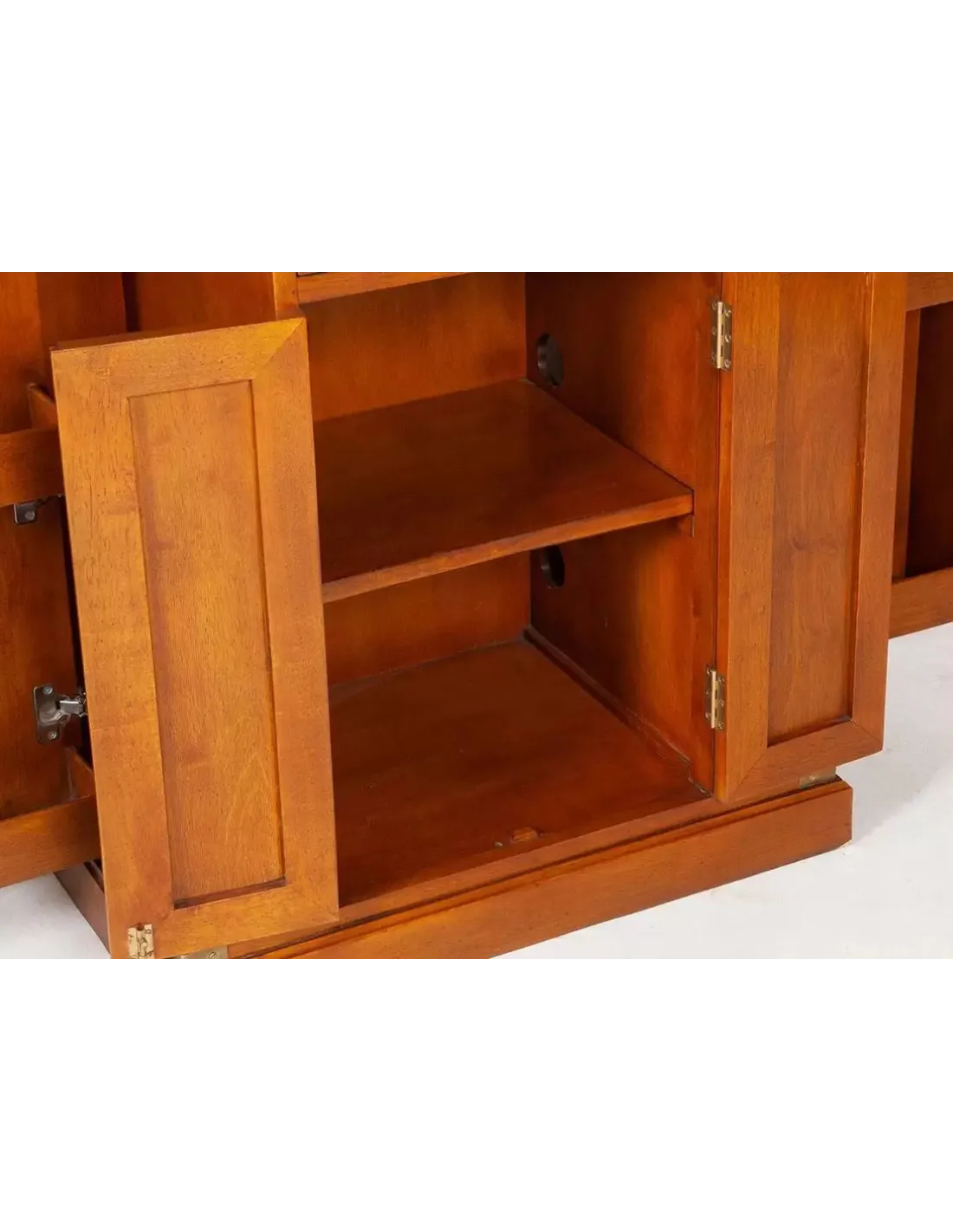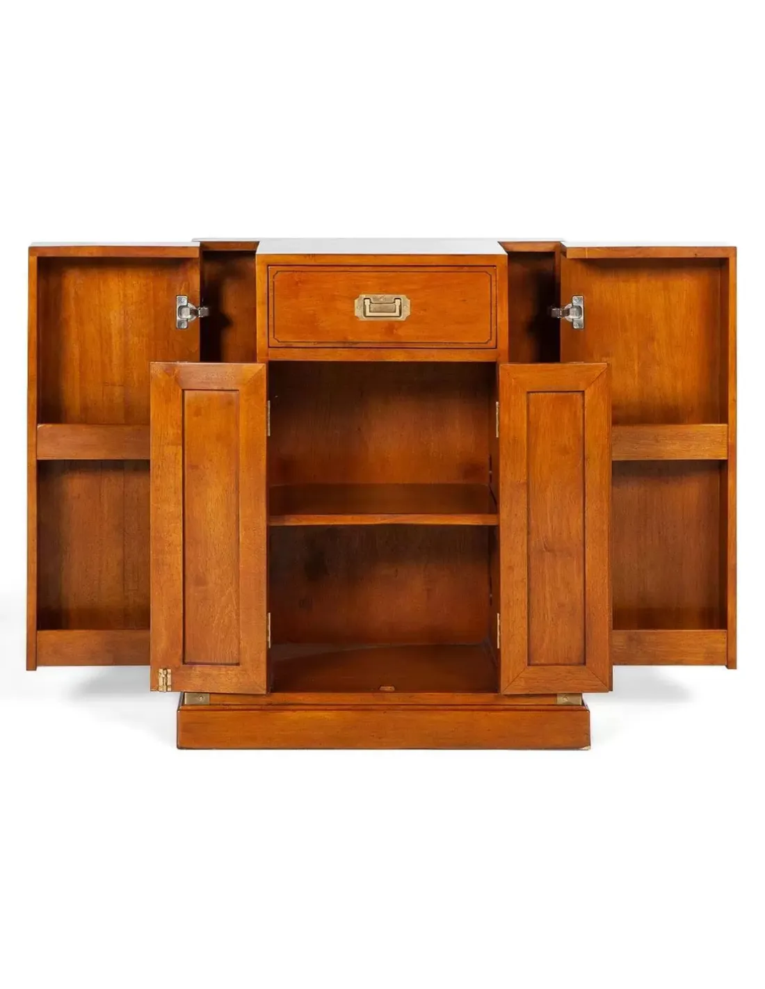 Bar meuble Magellan n°2 hévéa massif vernis noyer avec rose des vents.