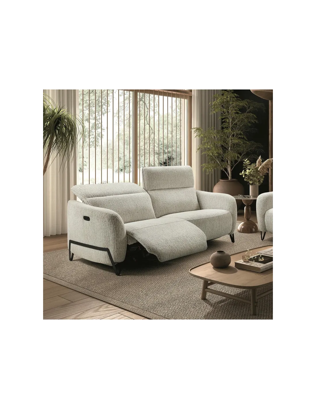 Canapé relax électrique 3 places tissu polyester beige de la gamme Amsterdam.