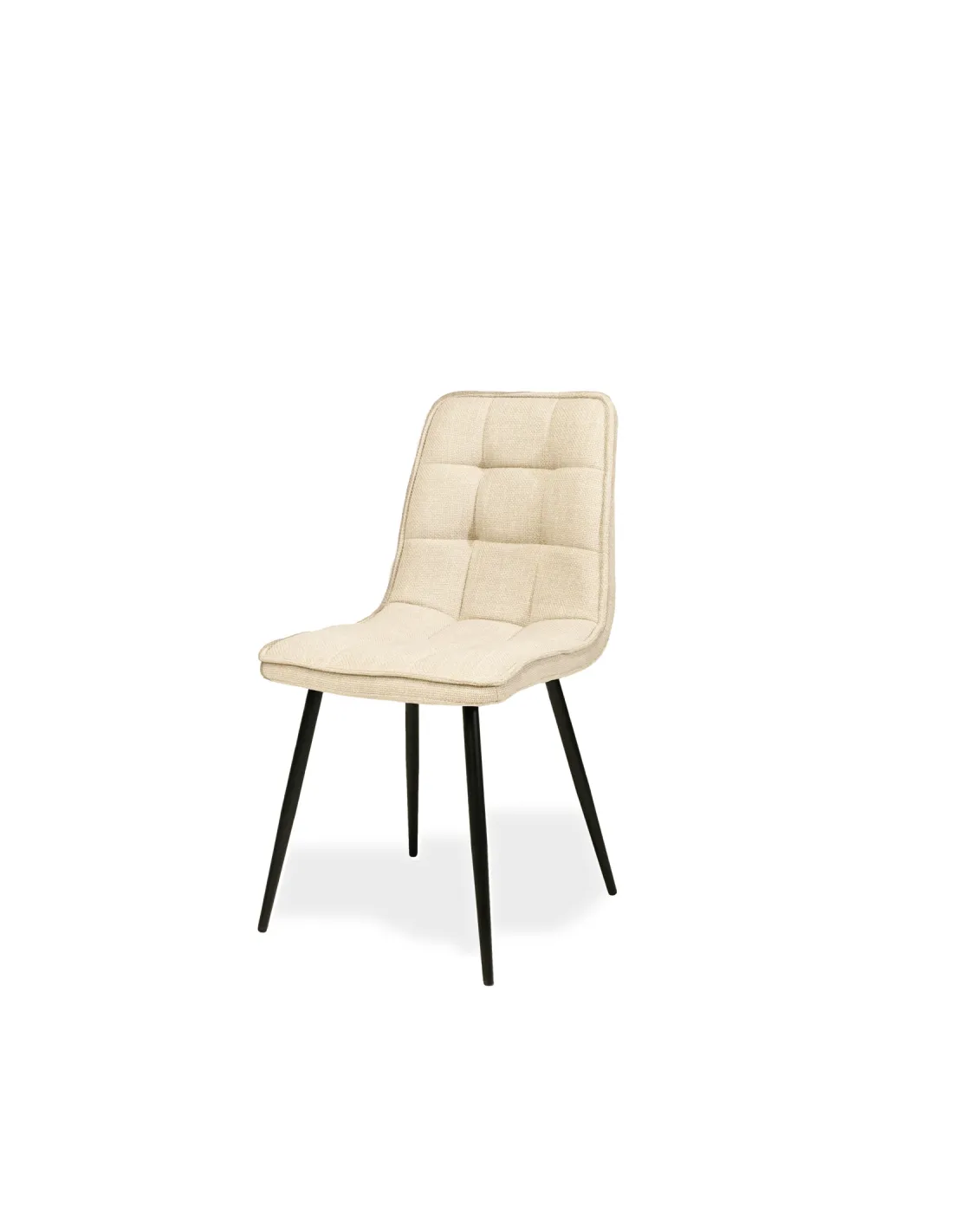 Son revêtement tissu et son piétement métallique composent une silhouette stable, raffinée et contemporaine.