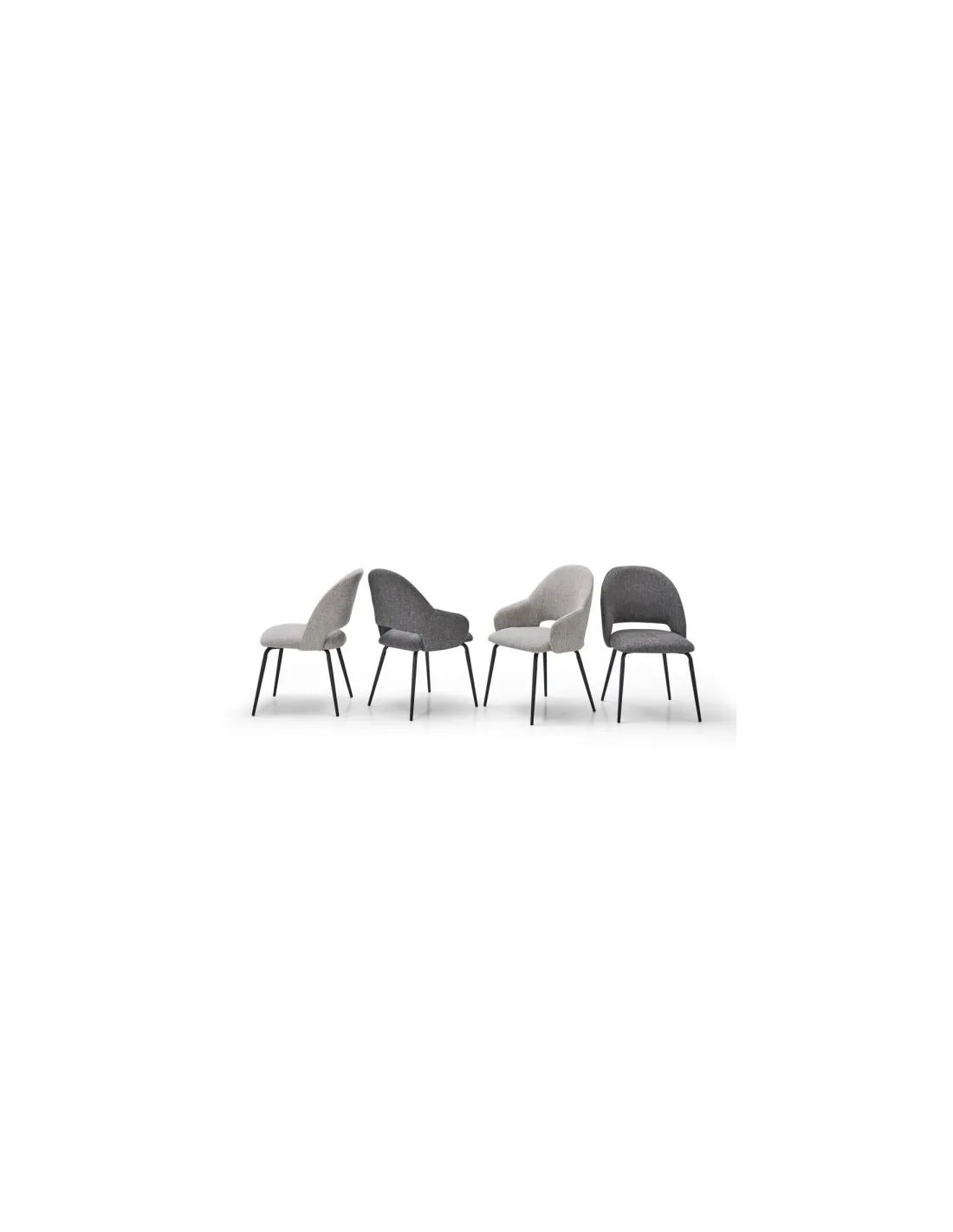 Son revêtement tissu et son piétement métallique composent une silhouette stable, raffinée et contemporaine.