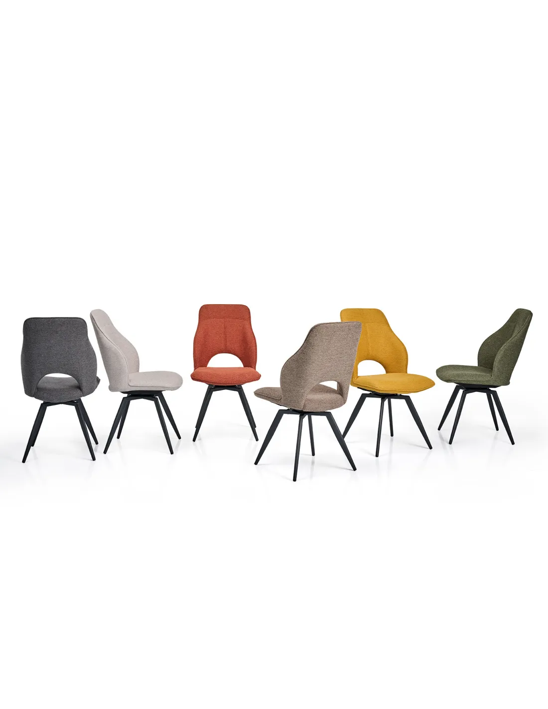 • Assise pivotante avec retour automatique.• Tissu terracotta lumineux.• Piètement métal noir thermolaqué.