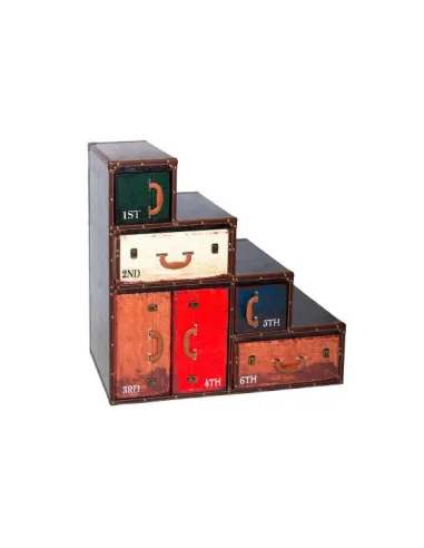 • Commode 6 tiroirs façon valises empilées• Design vintage esprit voyage• Finition bois patiné effet cuir• Compact, idéal pour chambre ou salon