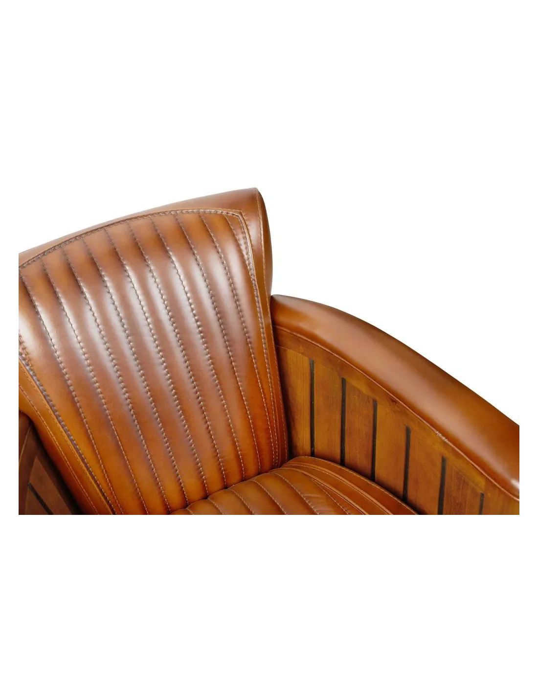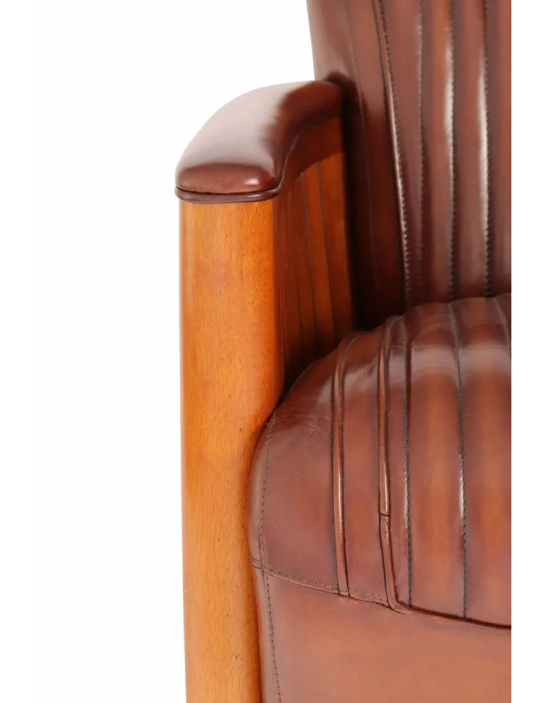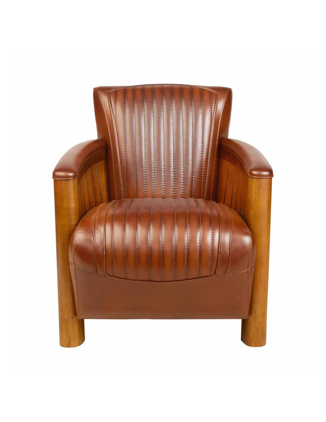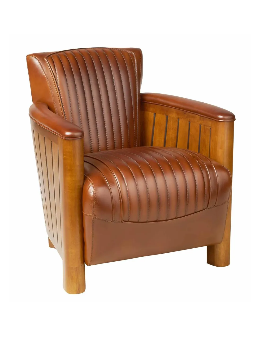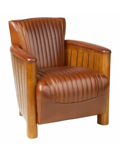 Fauteuil club cook vernis noyer cuir vintage