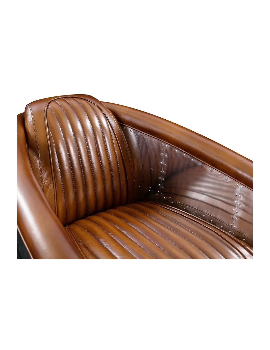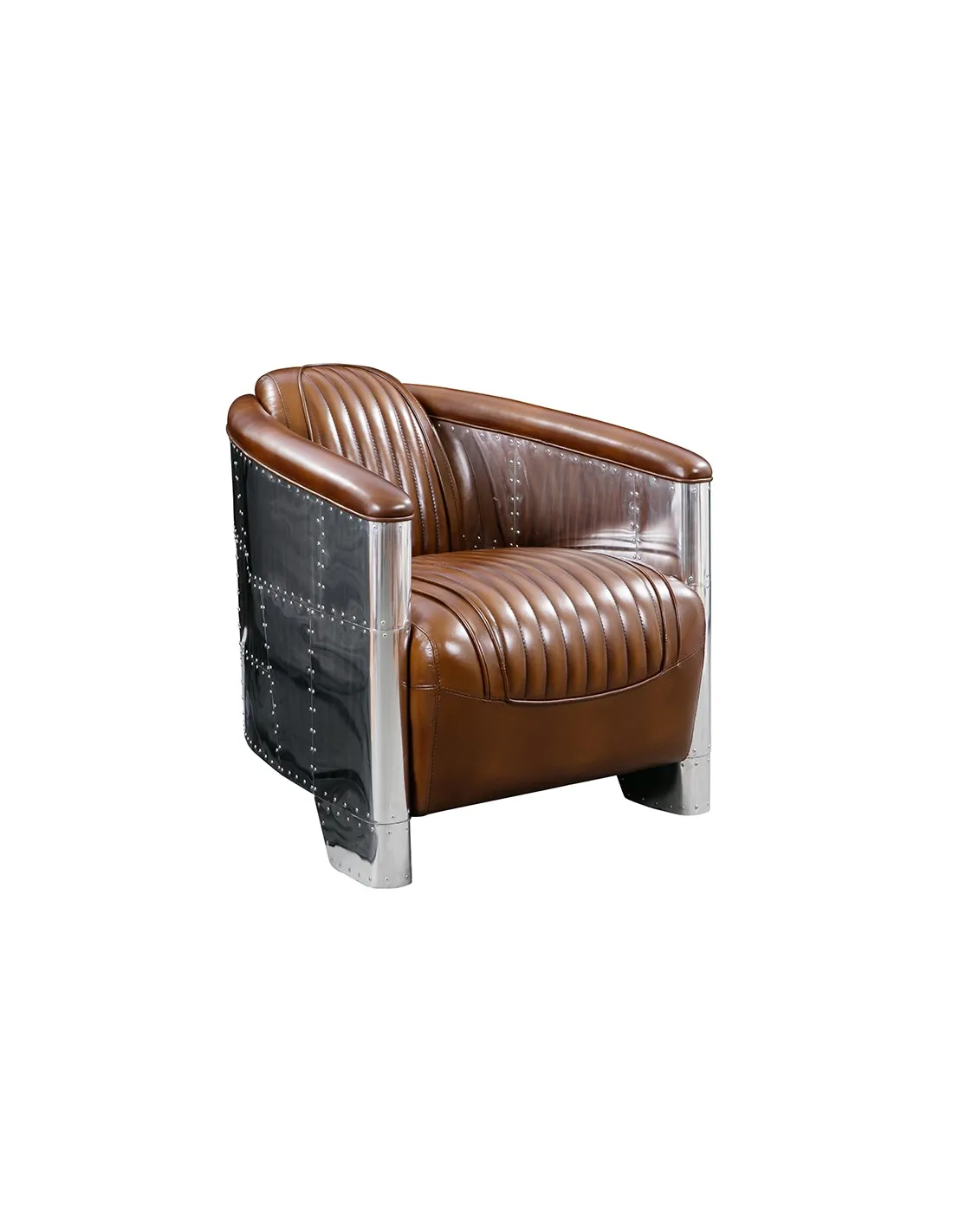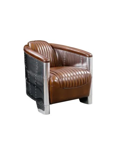 Fauteuil club aviateur en cuir vintage et aluminium riveté