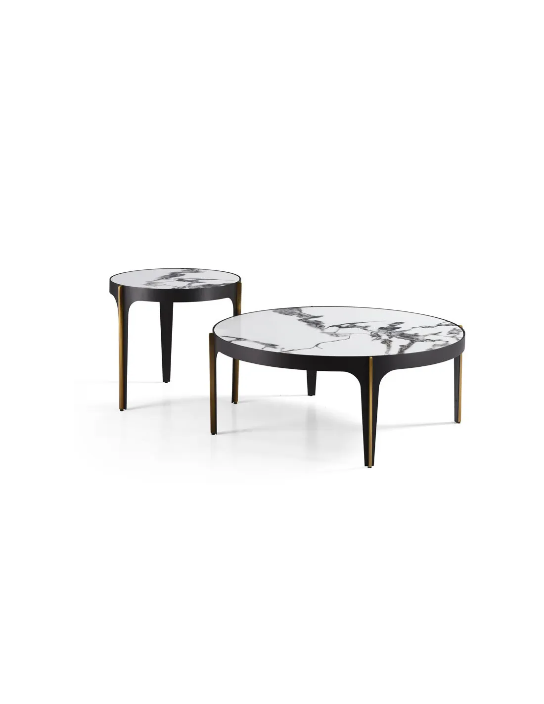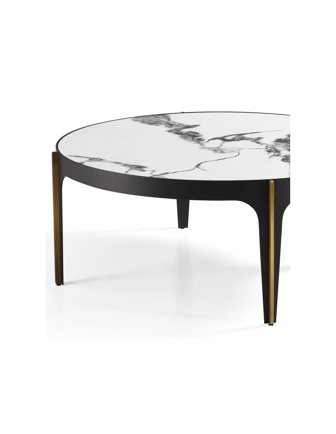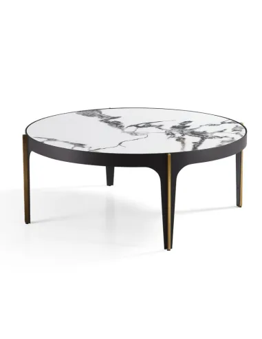 Donner à votre salon une touche de design intemporelle marquée par un piétement fin façon bronze réhaussés d'une fine ligne de laiton et habillée d'une pierre moderne.