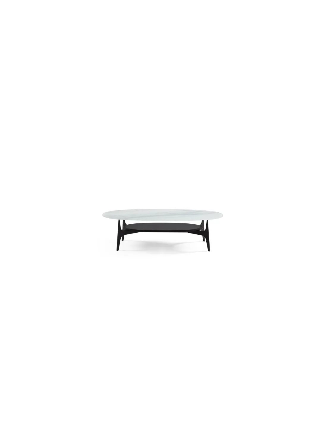 Contraste industriel/chic, parfaite pour structurer un salon contemporain. Métal gris anthracite, plateau en verre aspect jade blanc (12 mm) et second plateau mdf noir.