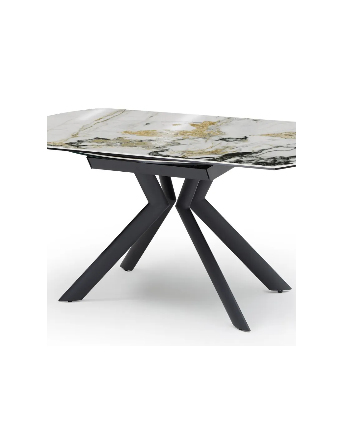 Châssis et piétement en métal noir, 2 allonges en céramique épaisseur 6mm collée verre trempé 8mm
