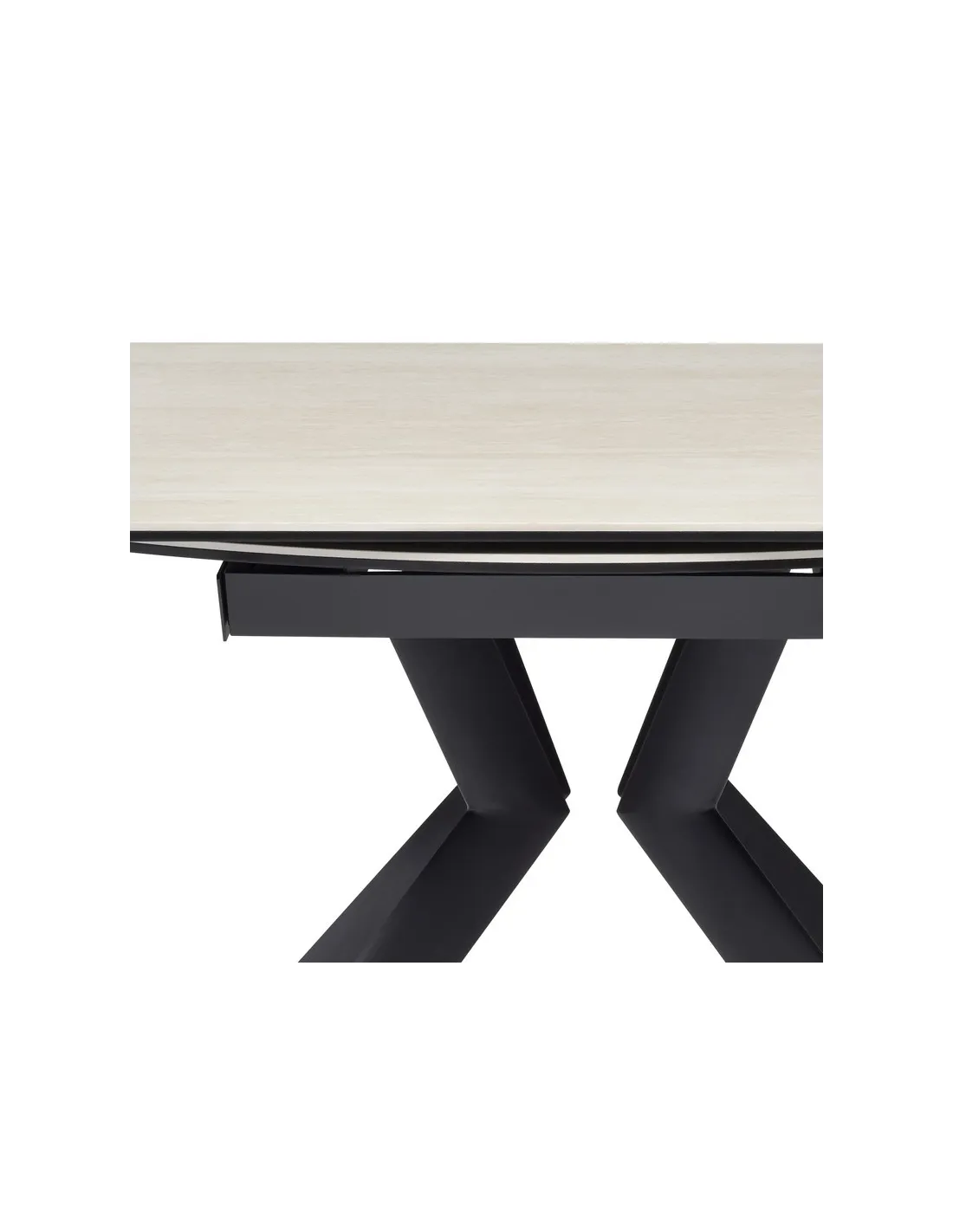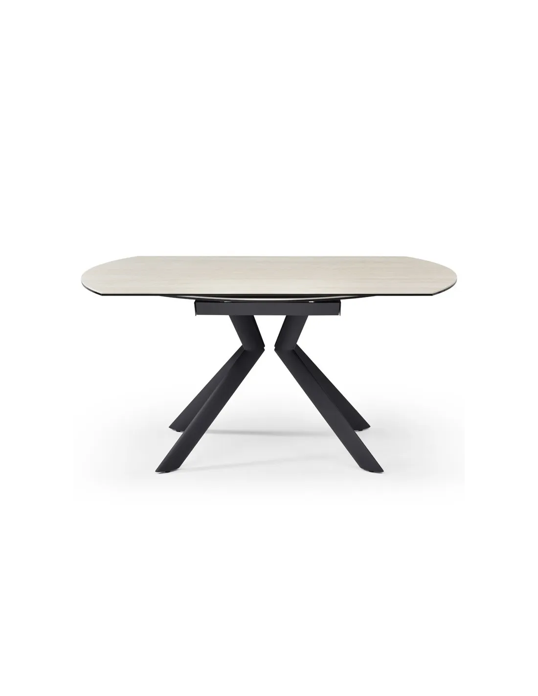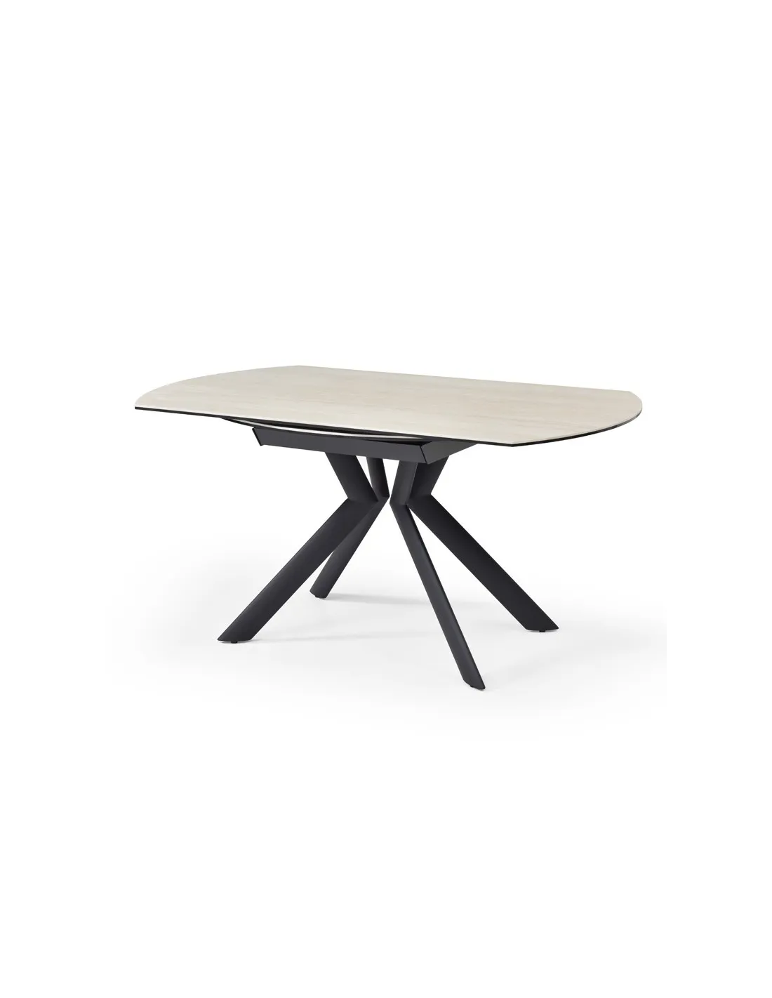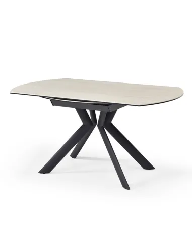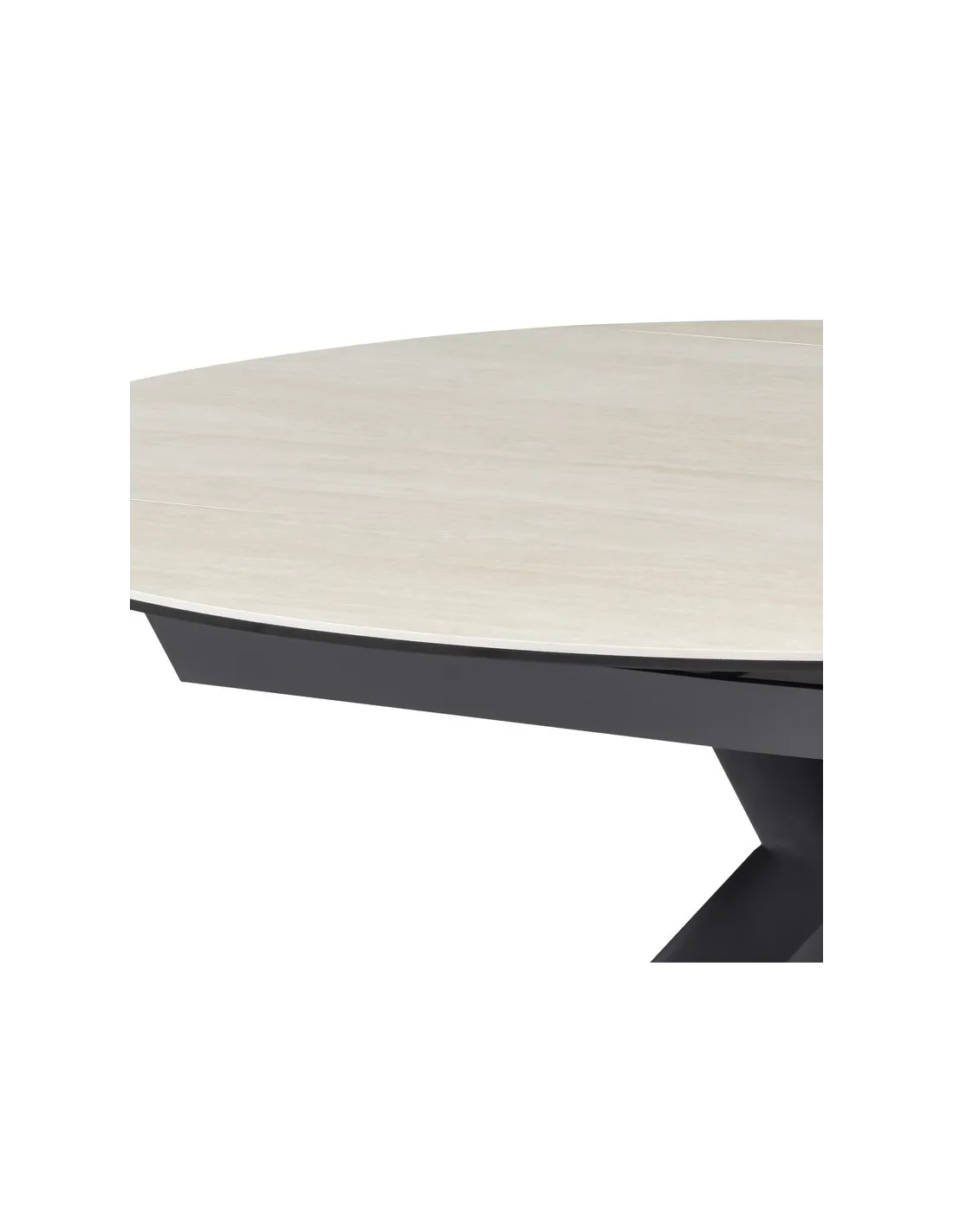Table Sofia en céramique Pandora à rallonges, passe de rectangle à ronde.
