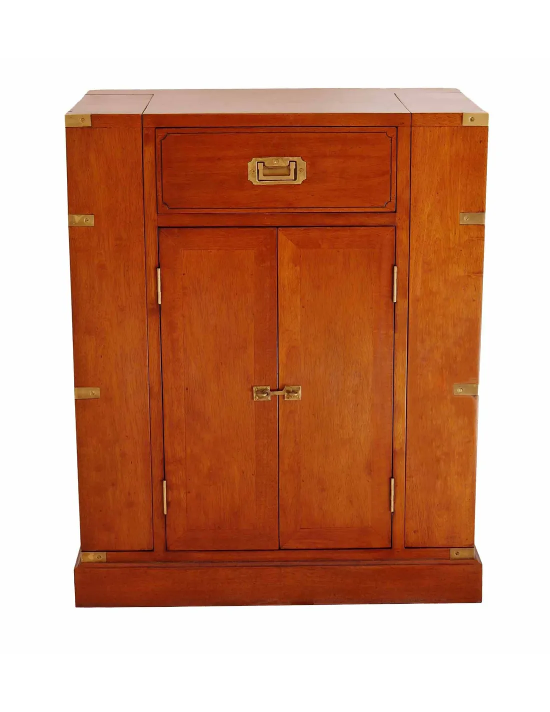 Bar meuble Magellan n°2 hévéa massif vernis noyer avec rose des vents.