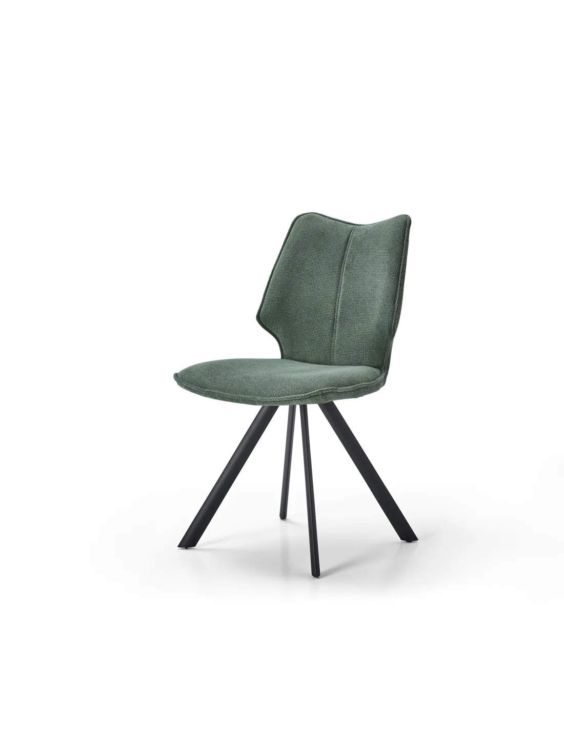 Le tissu kaki est à la fois doux et résistant, complété par un piétement noir mat moderne et robuste.